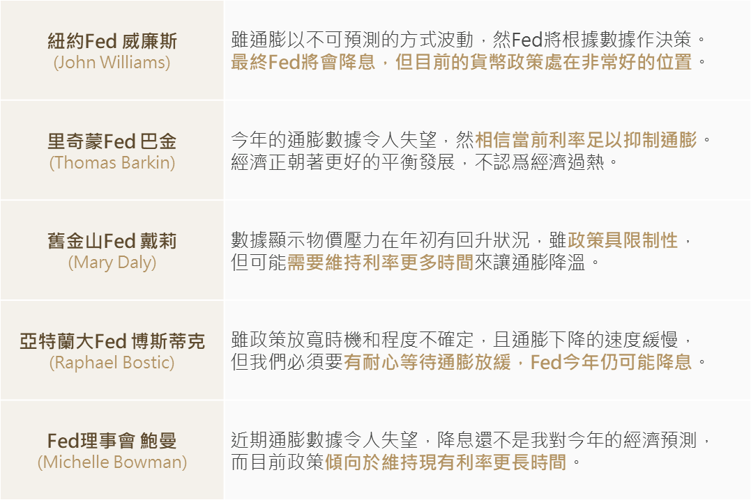 ▲ 近日Fed官員(具2024年投票權者)發表之貨幣政策評論摘要