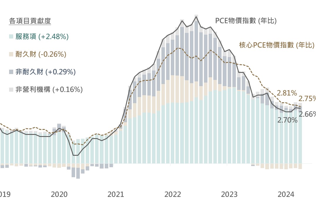 Fed密切關注之核心PCE年比仍延續下降趨勢,雖下降速度較緩慢,料在其趨勢未改變之情況下,Fed之政策基調亦將保持耐心以避免過度的緊縮。