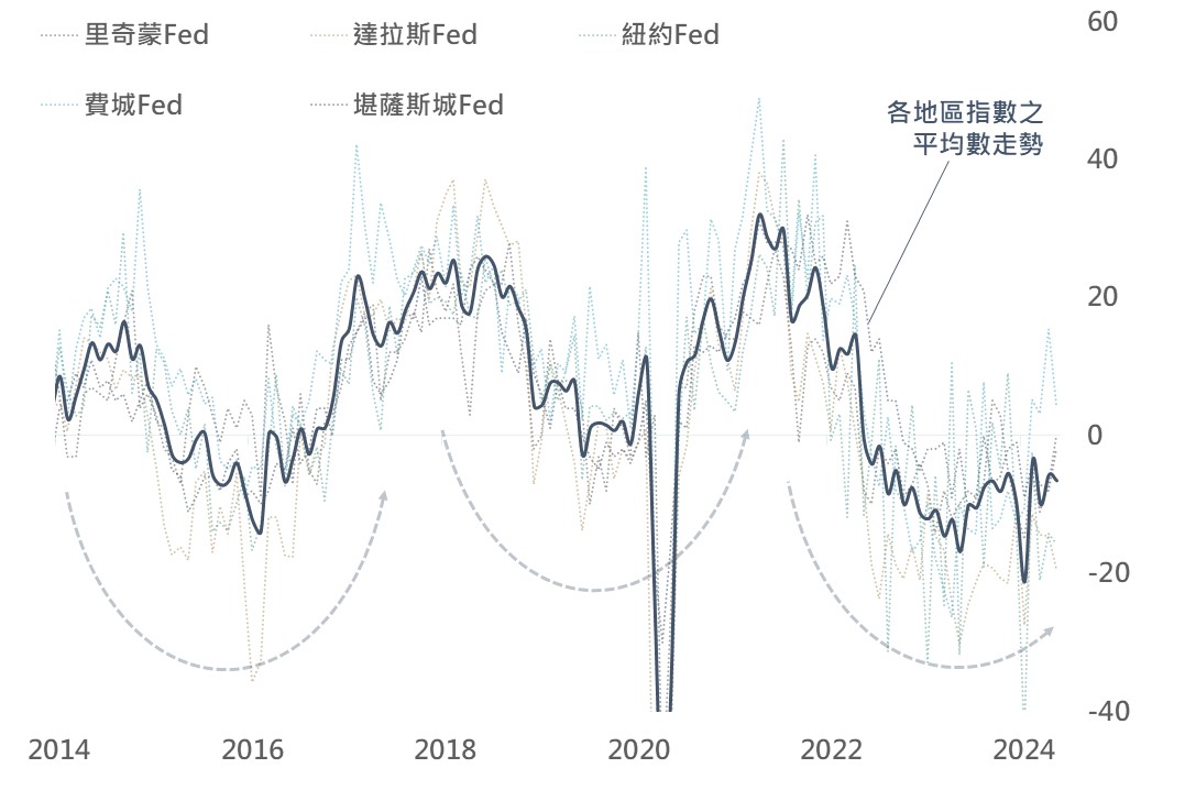 ▲ 美國各地區Fed之製造業展望調查指數