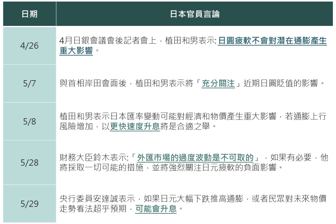 其中日圓貶值對日股影響方面,除了貨幣貶值不利國內消費、經濟外,近期日官員對日圓基調逐漸變化,日銀提前升息以阻貶之不確定升溫也壓抑了市場情緒,此外美元計價的投資人或想等日圓停止貶值時再行進場使日股買盤減弱。