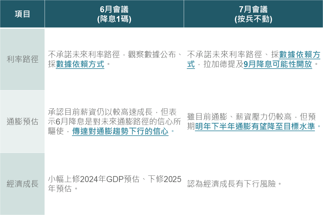 ▲ ECB 6、7月會議摘要比較