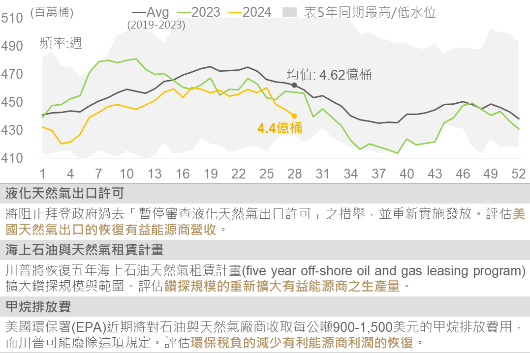 ▲ 美國原油庫存季節性(上) / 川普之傳統能源政策框架(下)