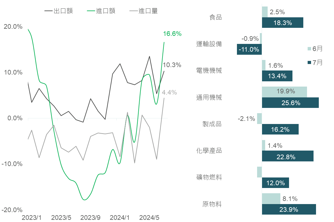 ▲ 日本進口、出口額年增率(左)/各項目進口額年增率變化(右)