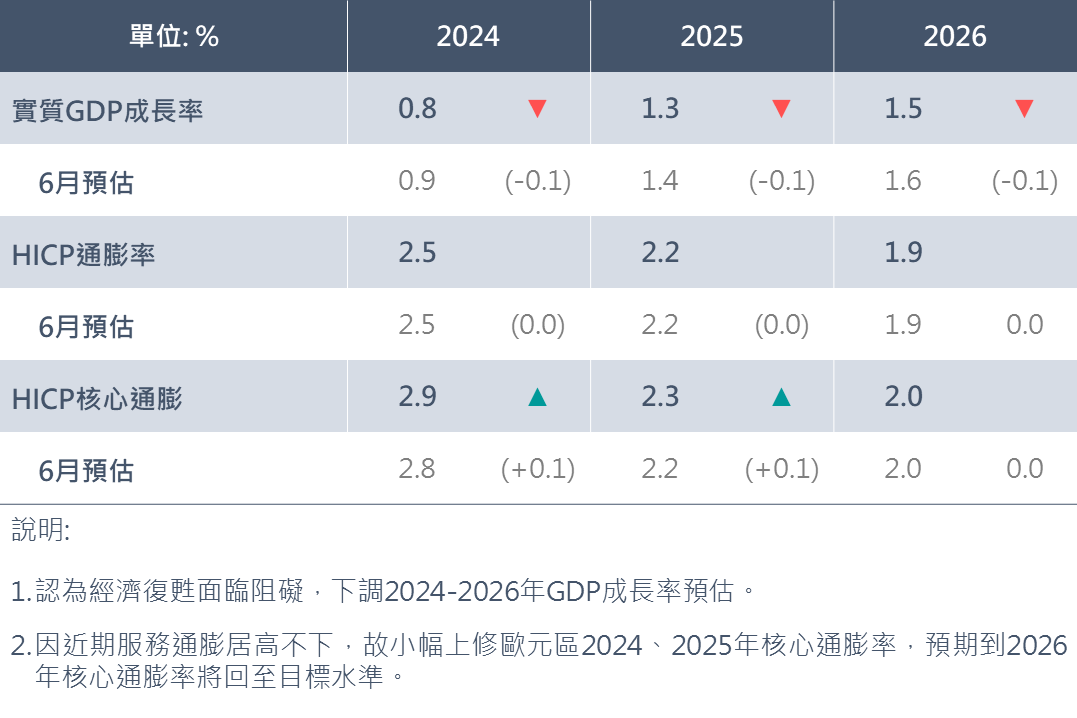 ▲ ECB9月會議對歐元區經濟數據預估
