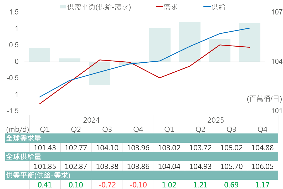 ▲ 各投研機構油市供需平衡預估表