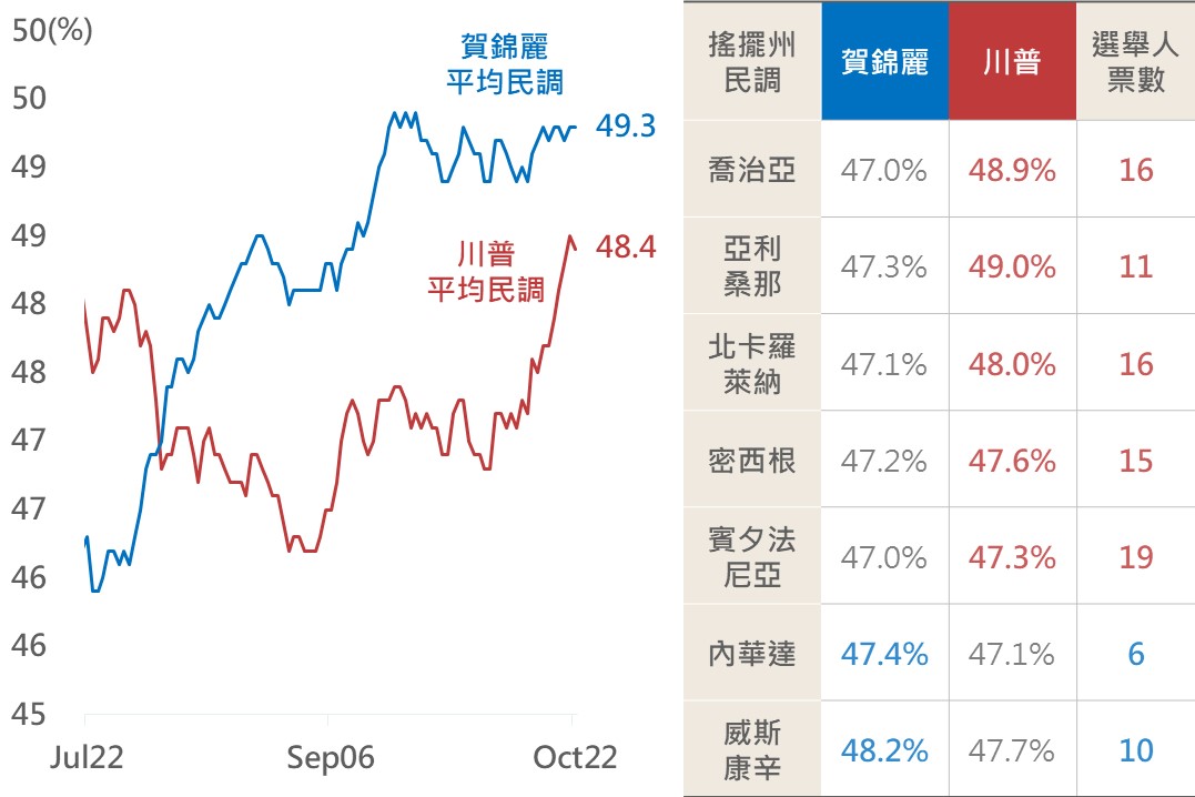 1. 川普民調於搖擺州小幅領先 市場再度熱議川普交易