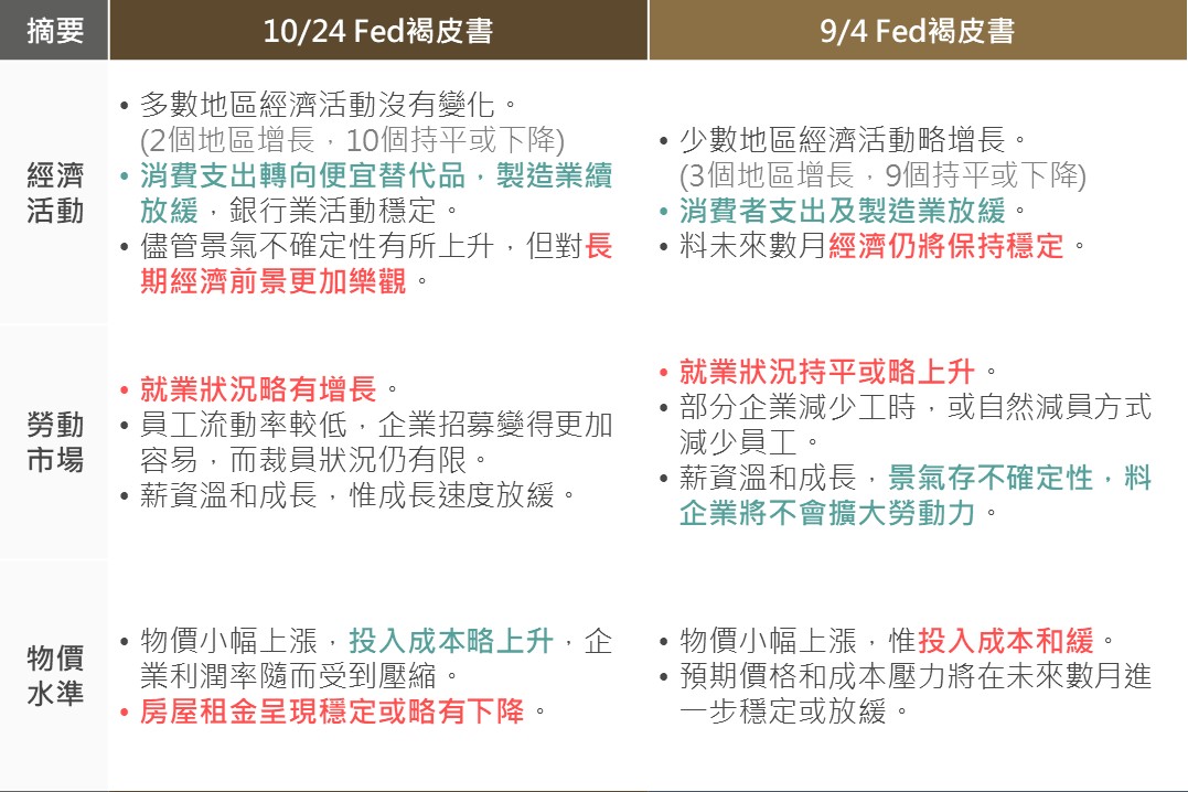 ▲ 近兩次Fed褐皮書摘要重點比較