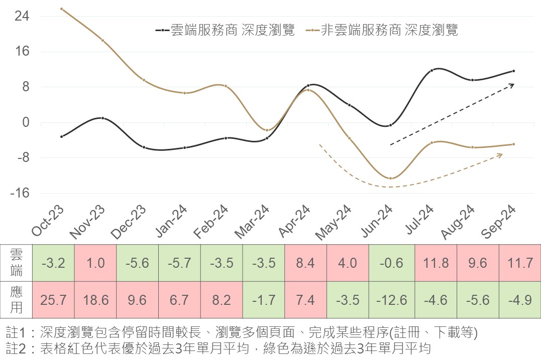 ▲ 雲端服務商深度瀏覽活動年增率(%)