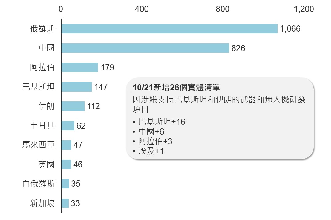 ▲ 美國商務部實體清單中各國家實體數量
