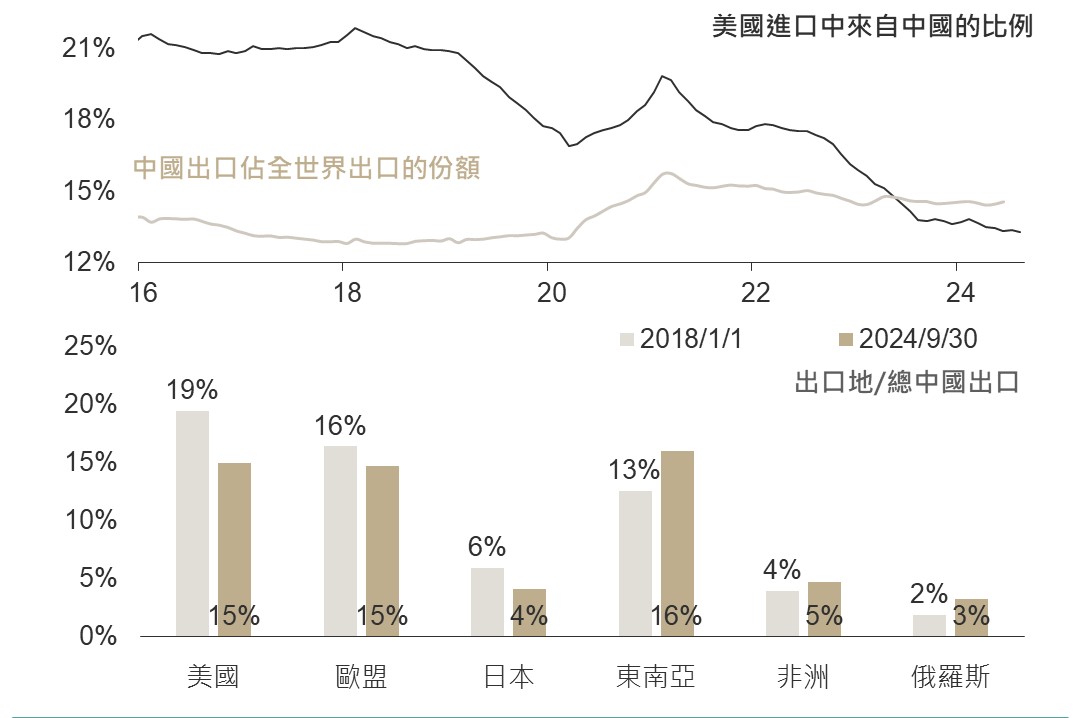 提供中國出口新成長動能的新三樣為主要遭加徵關稅項目,儘管新三樣僅10%出口至美,但主要出口地-歐盟強化此類壁壘,使中國出口成長曲線受阻;影響程度而言,雖說川普當選與否、高額關稅是否將如宣稱仍待美大選結果後知曉,惟出口雜音為中國出口不可避免之禍。