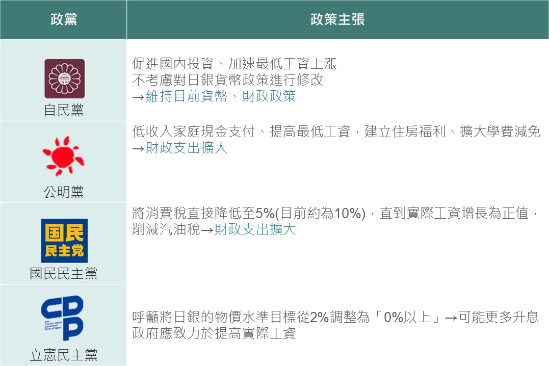 ▲ 日本主要政黨政策主張