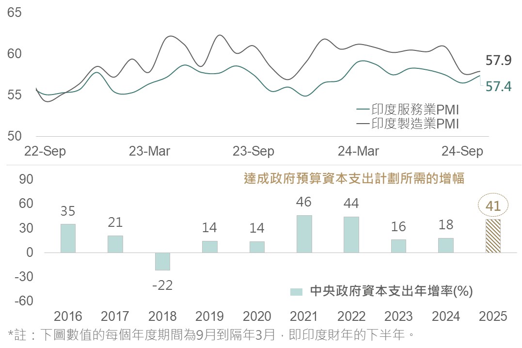 ▲ 印度PMI(上)/中央政府資本支出年增率(下)