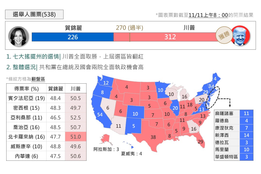 1. 關鍵搖擺州全面翻紅 美國總統大選由川普當選