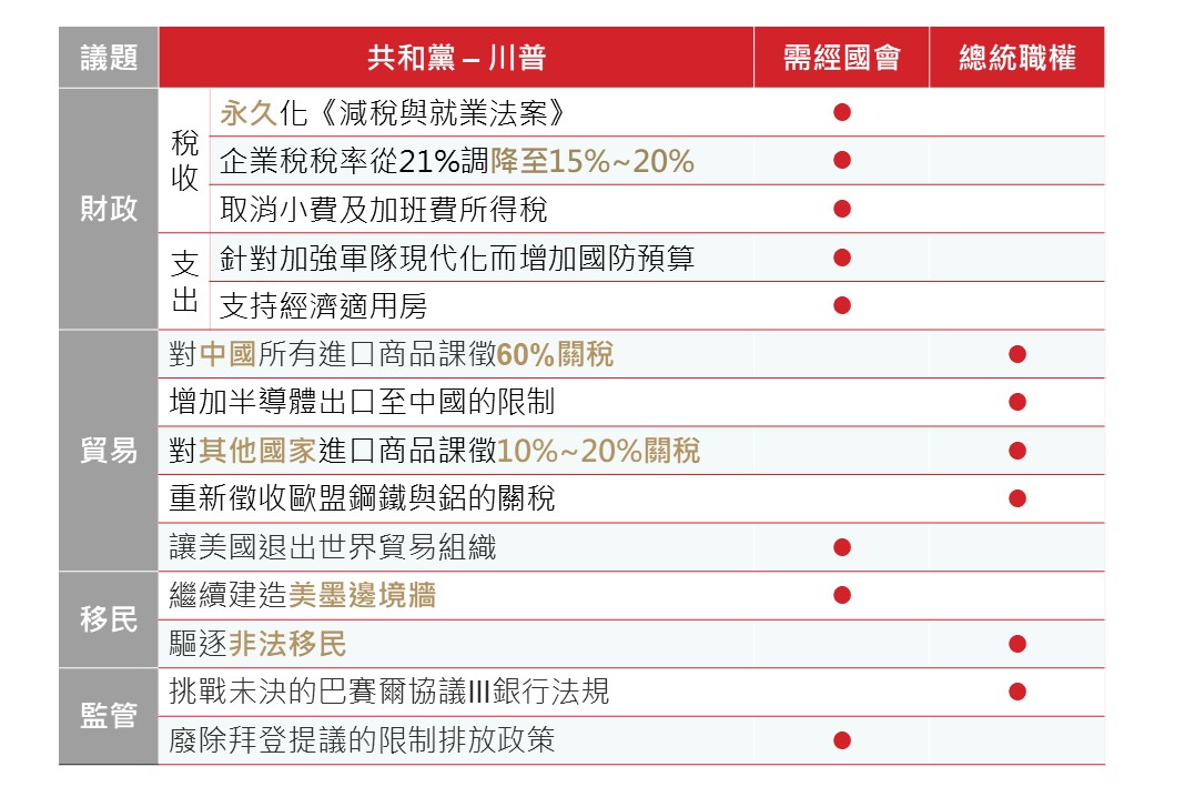 ▲ 川普-共和黨主導兩院情境下之政策影響分析