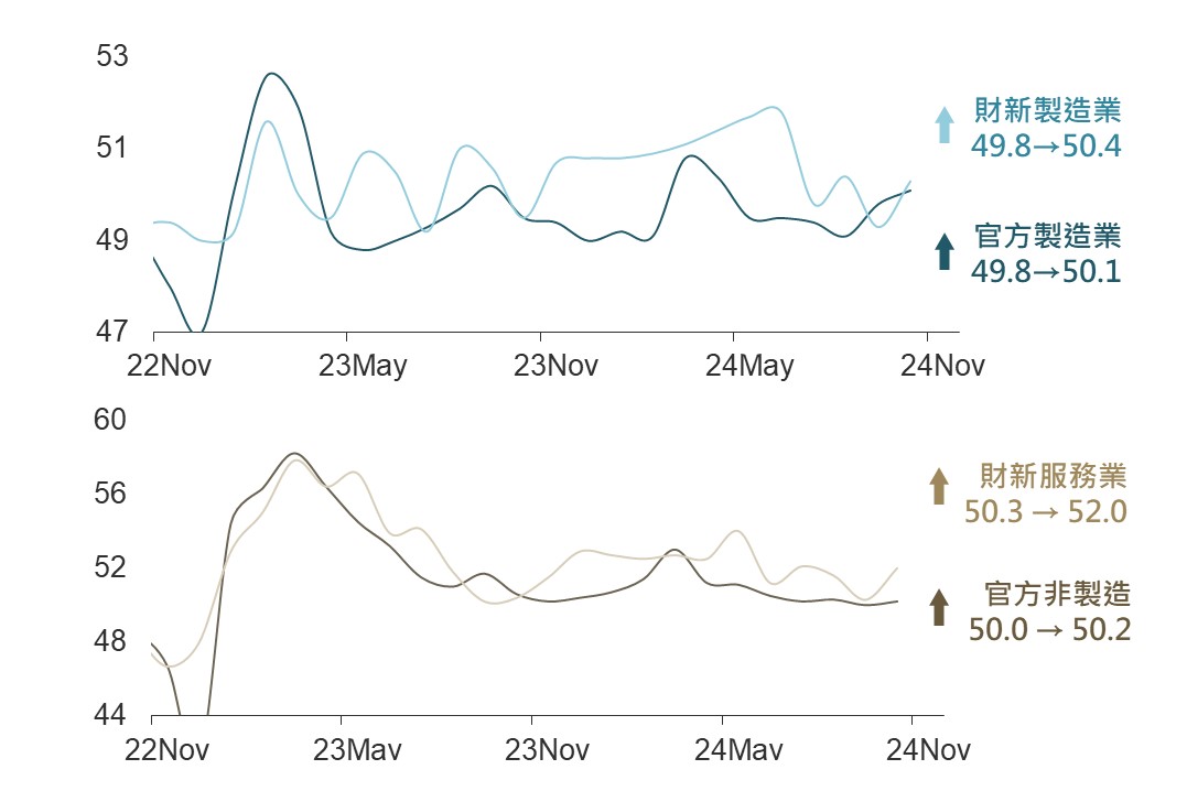 然而經濟層面,10月無論官方或是財新PMI皆全面呈現回溫,出口意外年增12.7%(但可能為美大選提前拉貨),先前已祭出的政策使得經濟數據延續回升;整體而言,雖川普當選不利中國,但另一方面經濟將有利指數托底;尋求支撐後的回升力道則需再視政策推出狀況而定。