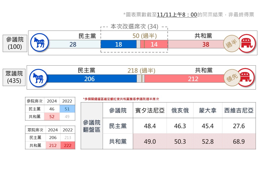 2. 參眾兩院亦由共和黨領先 形成紅色浪潮機會高