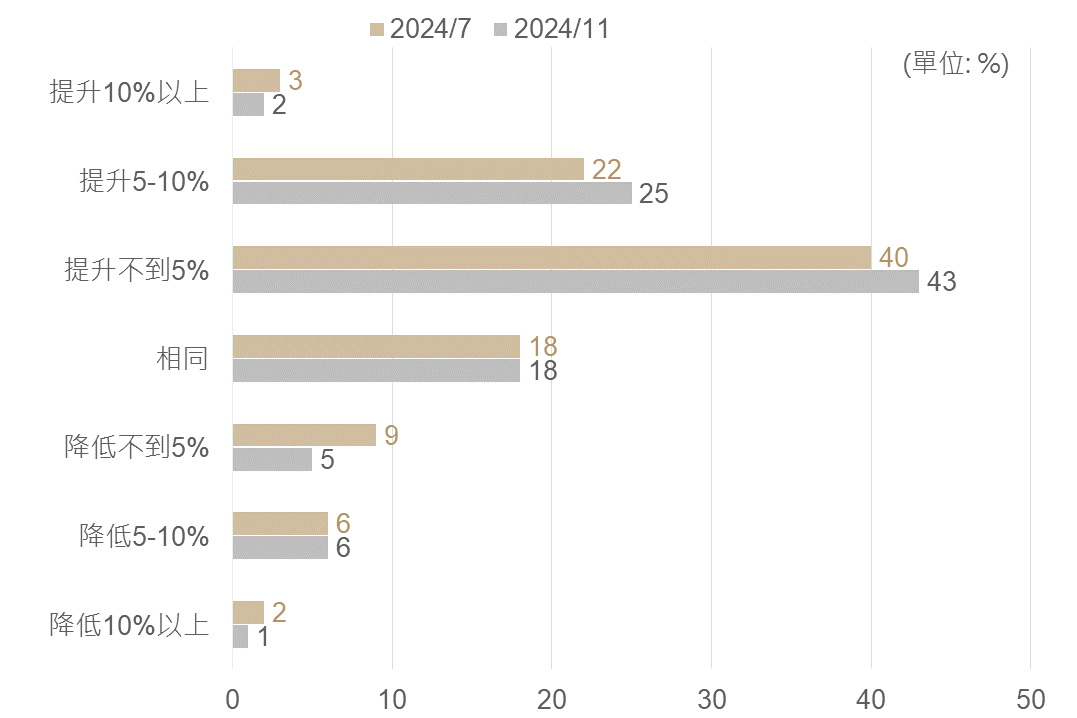 然另一方面,觀察12月Fed利率會議政策基調轉趨鷹派,且至2025年部分Fed利率政策票委將進行輪換,貨幣政策立場偏向鷹派之官員數將增加,故預期Fed將於明年起放慢其降息腳步,