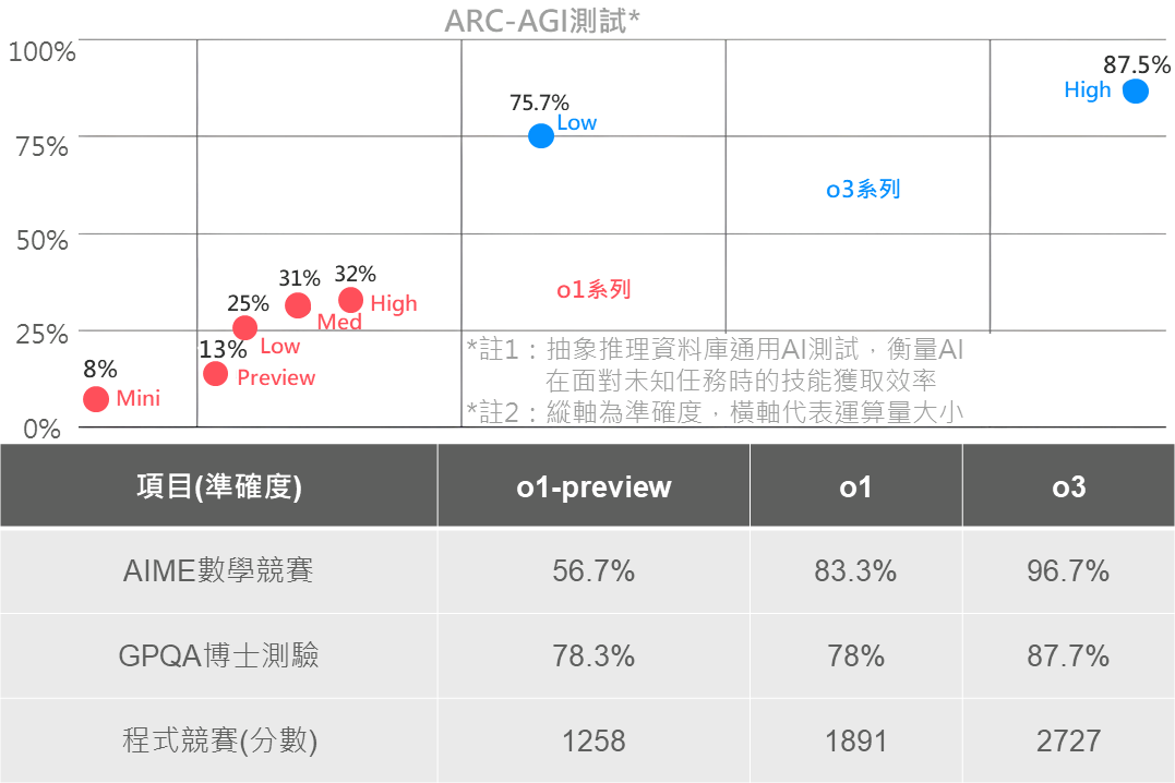 ▲ OpenAI o系列模型效能比較