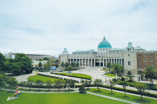 氣勢磅礴的亞洲大學行政大樓是校區最大建築。