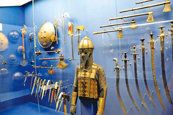 兵器廳展示著包含歐式防禦系統、馬匹防禦兵器等創辦人收藏的兵器。