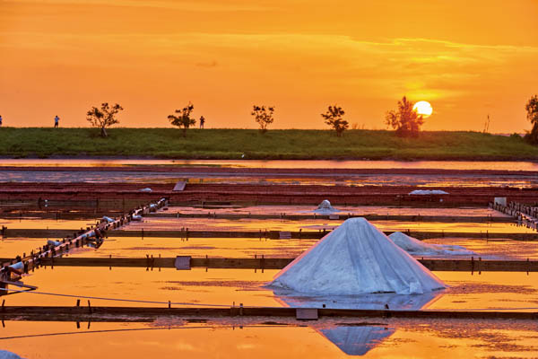 井仔腳瓦盤鹽田是目前全臺碩果僅存最完整的曬鹽場,於夕照的光線下更顯壯闊之美。