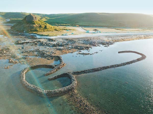 透過空拍技術完整記錄下澎湖石滬現況。(圖片提供/離島出走)