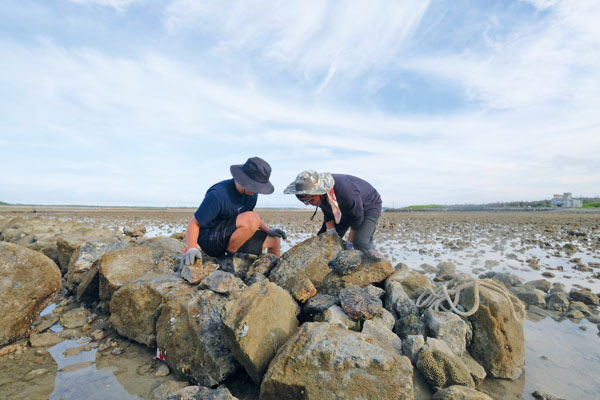 楊馥慈和夥伴親身學習、參與石滬修復,希望將逐漸失傳的技藝繼續傳承下去。