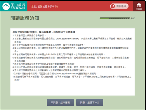 提醒您:在進入「好康/紅利>銀行」頁面時,將畫面拖曳到最下方,選擇玉山銀行的「玉山網路銀行」進行招財點兌換,請勿選擇頁面頂端的「玉山銀行信用卡」。