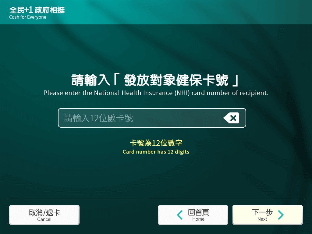 STEP4. 輸入發放對象健保卡12位卡號數字