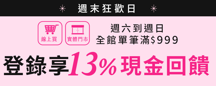 每週六、日於寶雅實體門市及寶雅線上買持玉山寶雅聯名卡單筆消費滿 999元(含) 以上,登錄享 13% 現金回饋。