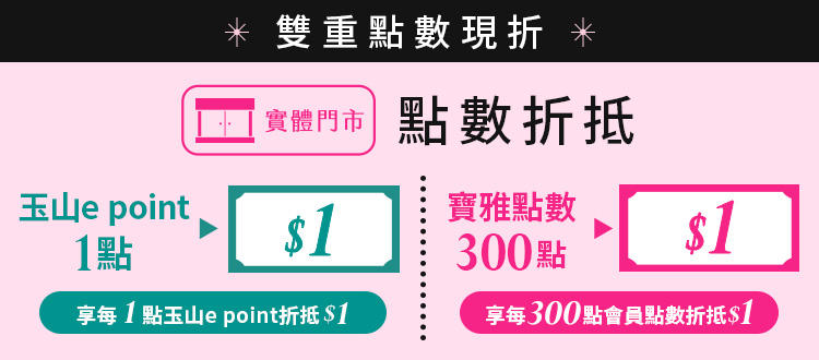 - 需於消費前將玉山寶雅聯名卡背面之寶雅會員號碼後六碼(278開頭)綁定至POYA寶雅APP,方可享有活動優惠。
